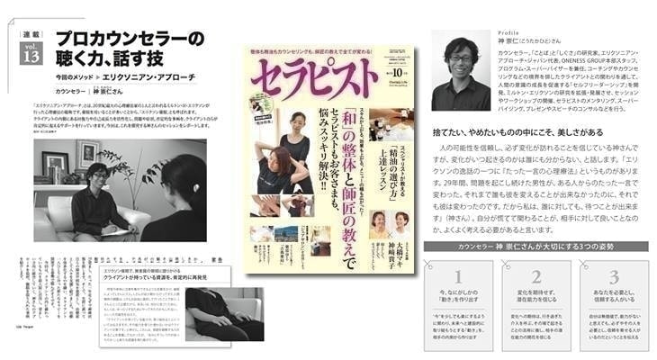 セラピー、カウンセリング、自然療法の専門誌 「セラピスト」誌の2015年4月号にて神 崇仁が取材を受け、『タイムライン・セラピー』が5ページで紹介されました。
